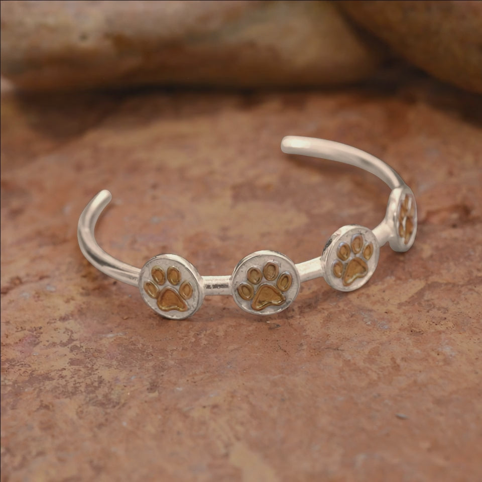 Тази ръчно изработена сребърна гривна 925 със златни акценти е емоционално бижу за хора, които носят любовта към животните близо до себе си. Лапичките, подчертани с топъл златист детайл, придават мек контраст и усещане за грижа, близост и споделени моменти.
