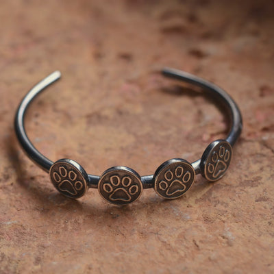 Тази ръчно изработена сребърна гривна 925 с частично оксидирана повърхност е емоционално бижу за хора, които носят любовта към животните близо до себе си. Лапичките са деликатен акцент, който говори за връзка, вярност и споделени моменти.